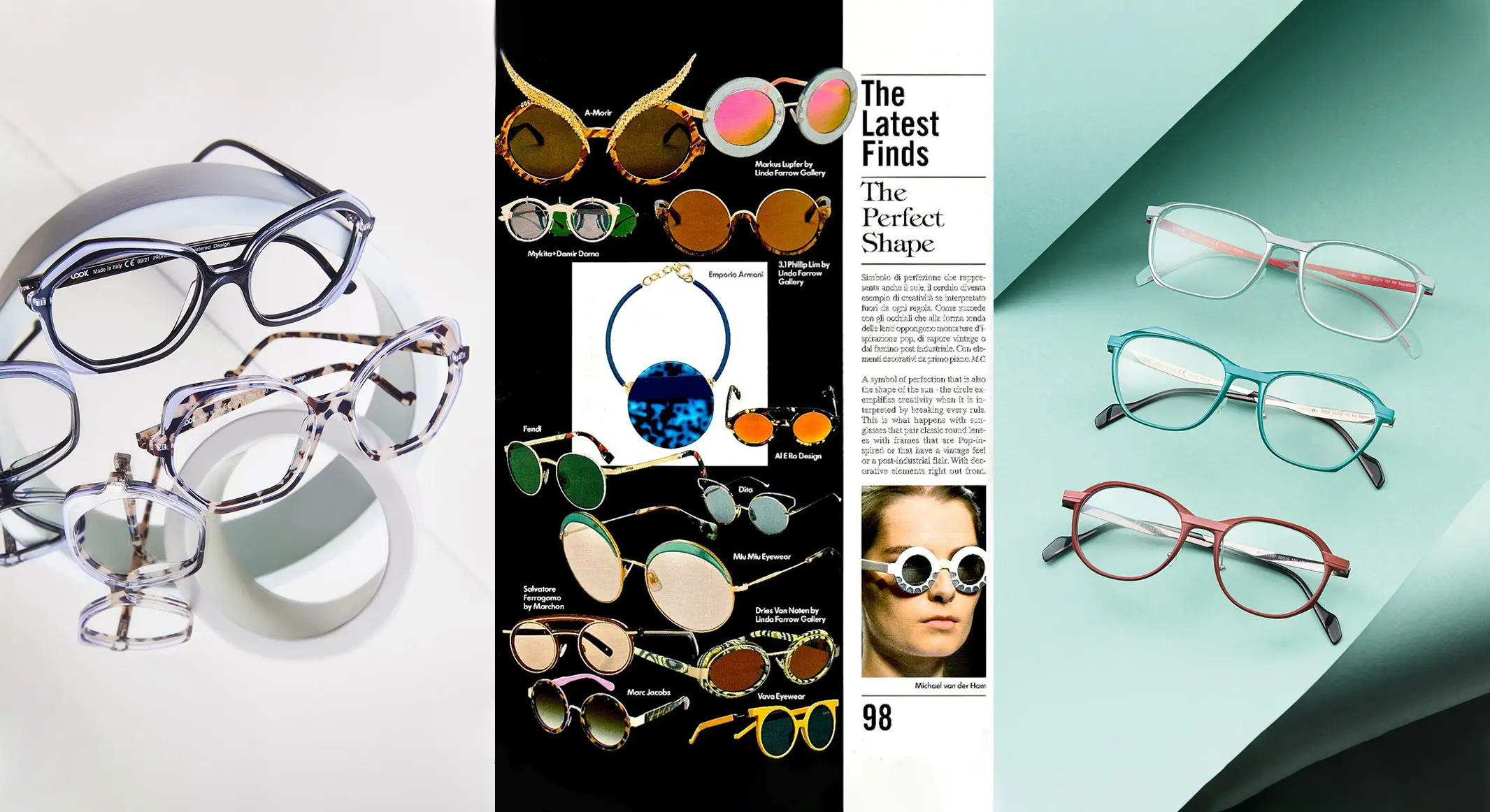 Our way of imagining eyewear design is creating collections in an entirely new style, based on the interaction of different types of references ranging from design, architecture, art, graphics and fashion. We have proudly labelled innovations and registered designs, creating collections thinking of their intrinsic characteristics of uniqueness, whether they are innovative materials (Magnesium, deposited design), experimental (flat glass lenses, sculpture hinges) or revolutionary shapes and concepts.